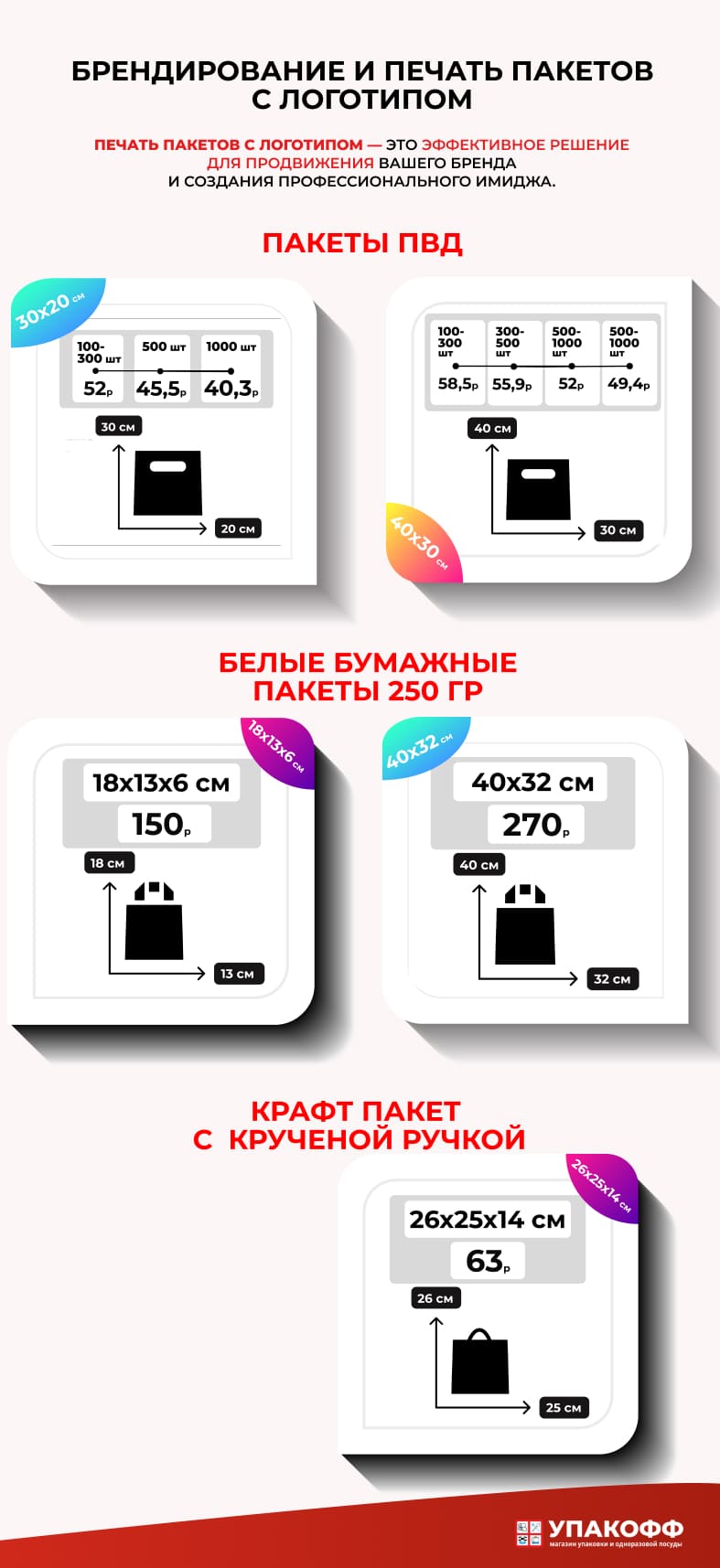 Наши консультанты покажут образцы и помогут выбрать оптимальный вариант: будет ли это печать на бумажных пакетах, печать на крафтовых пакетах или печать на полиэтиленовых пакетах ПВД.